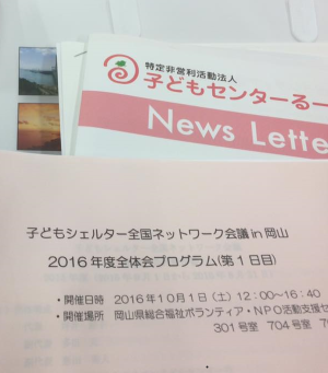 2016年10月1日〜2日には、子どもシェルター全国ネットワーク会議 in 岡山に、参加してまいりました!